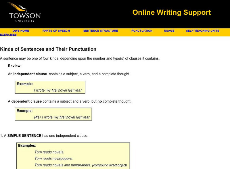 Towson University: Ows: Kinds of Sentences and Their Punctuation