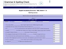 In this online interactive grammar skills instructional activity, students examine 10 sentences that are missing words and select the appropriate words to complete each of the sentences and match them to the sentences. Student ...