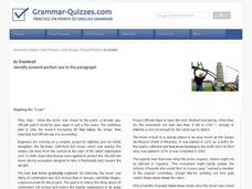 For this present perfect tense worksheet, students identify the tense used in the sentences indicated by the context. Students complete 6 problems.