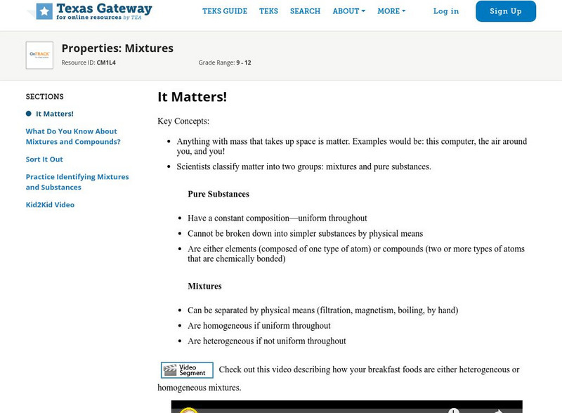 This unit covers introductory concepts of mixtures and solutions. Students think about how mixtures and solutions, and atoms and molecules can influence new technologies developed by engineers. The first lesson explores the fundamentals...