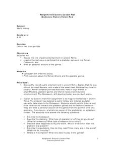Ninth graders examine the role of public entertainment in Ancient Rome. In this World History lesson, 9th graders imagine themselves as a participant at a gladiator game at the Roman Colosseum. Students write a personal...