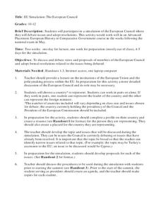 Students take on the role of European Council members. In this European Union (EU) lesson, students research pertinent issues facing the EU. Students use their research findings to prepare for a debate simulation.