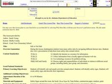 Students discuss the safety signs they viewed on their way to school before looking at safety signs at a website that presents a traffic safety school for students. They listen to a read aloud of Tana Hoban's, "I Read Signs," make signs,...
