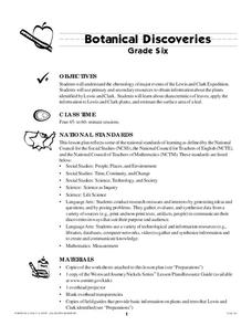 Sixth graders examine the Lewis and Clark Expedition. For this plant discovery lesson, 6th graders put in chronological order the plant discoveries of Lewis and Clark. Students understand the characteristics of leaves and find the area...