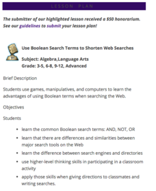 Have you ever conducted a Web search and received too many hits? Teach your class about Boolean search terms and provide them time to practice conducting efficient online searches. This lesson plan contains several fun activities which...