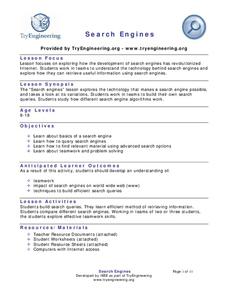 Introduce search engines with an activity that models how search engines work and the different algorithms they employ. Working in groups, class members then build search queries to demonstrate the knowledge learned.