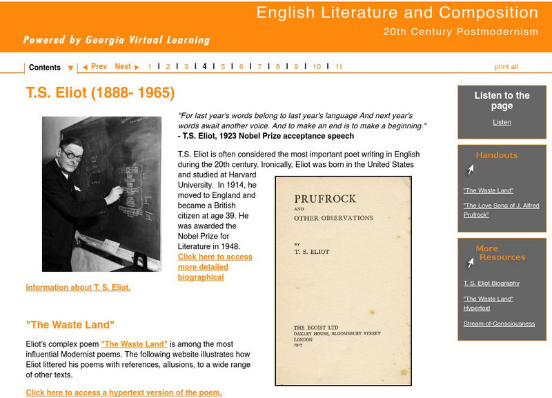 Ga Virtual Learning: British Lit: 20th Century Postmodernism: t.s. Eliot