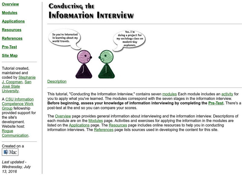 This site provided by San Jose State University is a 7-module tutorial on how to conduct an information interview.