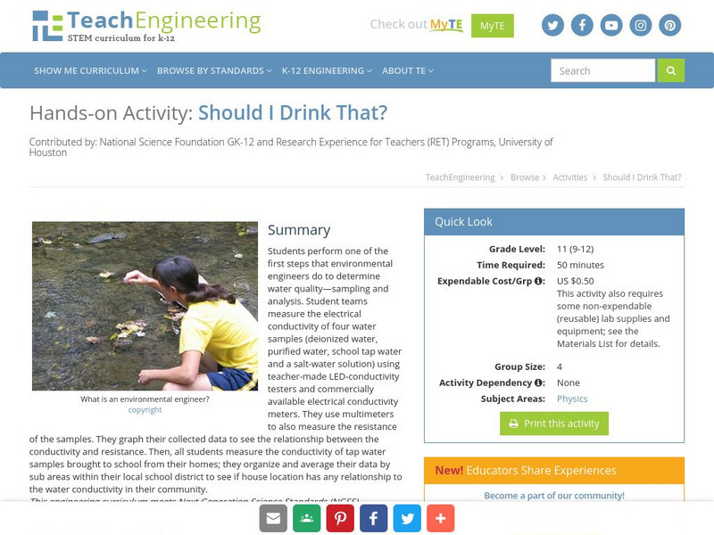 Teach Engineering: Should I Drink That?