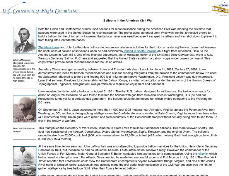 U.s. Centennial of Flight Commission: Balloons in the American Civil War