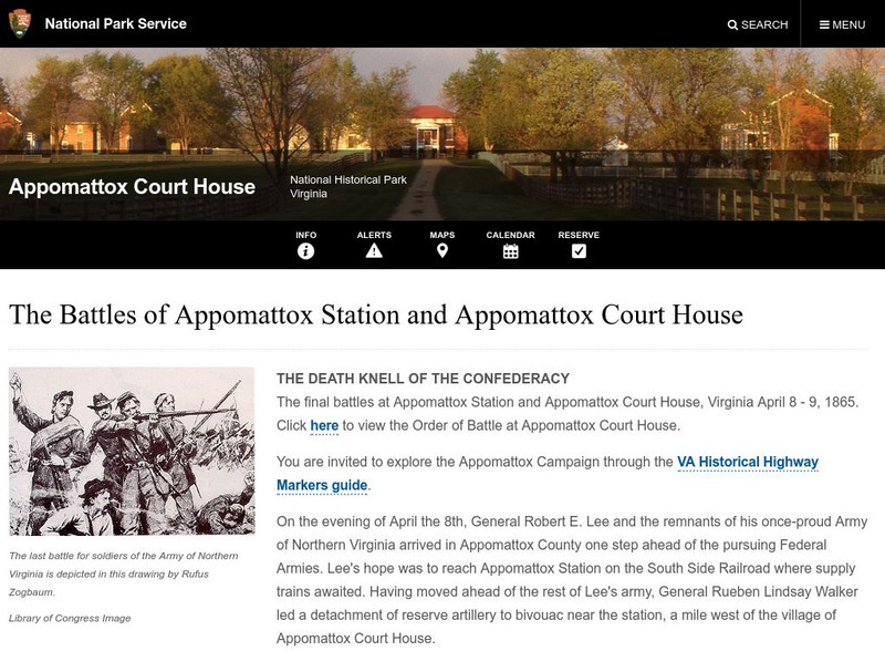 Part of the website for the Appomattox Court House National Historical Park, this site details the final battles at Appomattox Station and Appomattox Court House. Pictures and a map included.