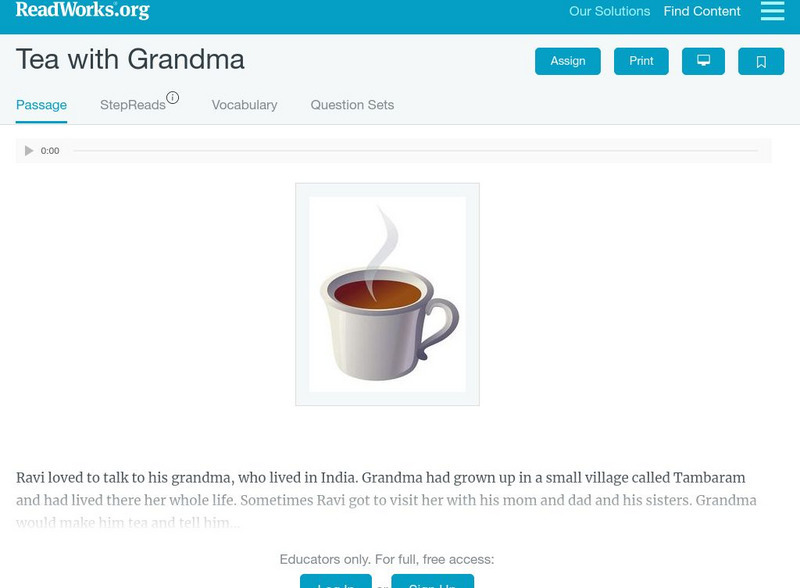 [Free Registration/Login Required] A literary text about a boy named Ravi who loved listening to his grandmother tell stories about growing up in a village called Tambaram. A question sheet is available to help students build skills in...