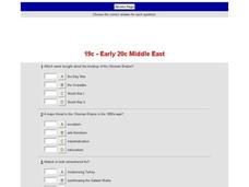 In this online interactive world history activity, students answer 10 multiple choice questions regarding the history of the early Middle East. Students may submit their answers to be scored.