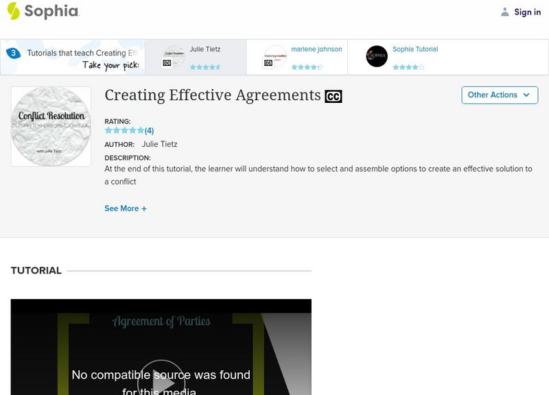 At the end of this tutorial, the learner will understand how to select and assemble options to create an effective solution to a conflict. It is 1 of 3 in the series titled "Creating Effective Agreements."