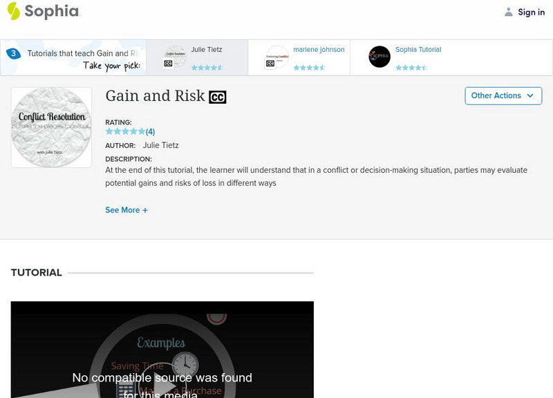 At the end of this tutorial, the learner will understand that in a conflict or decision-making situation, parties may evaluate potential gains and risks of loss in different ways. It is 2 of 3 in the series titled "Gain and Risk: Playing...