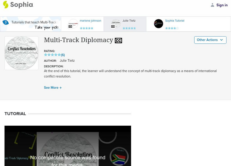 At the end of this tutorial, the learner will understand the concept of multi-track diplomacy as a means of international conflict resolution. It is 3 of 4 in the series titled "Multi-Track Diplomacy."