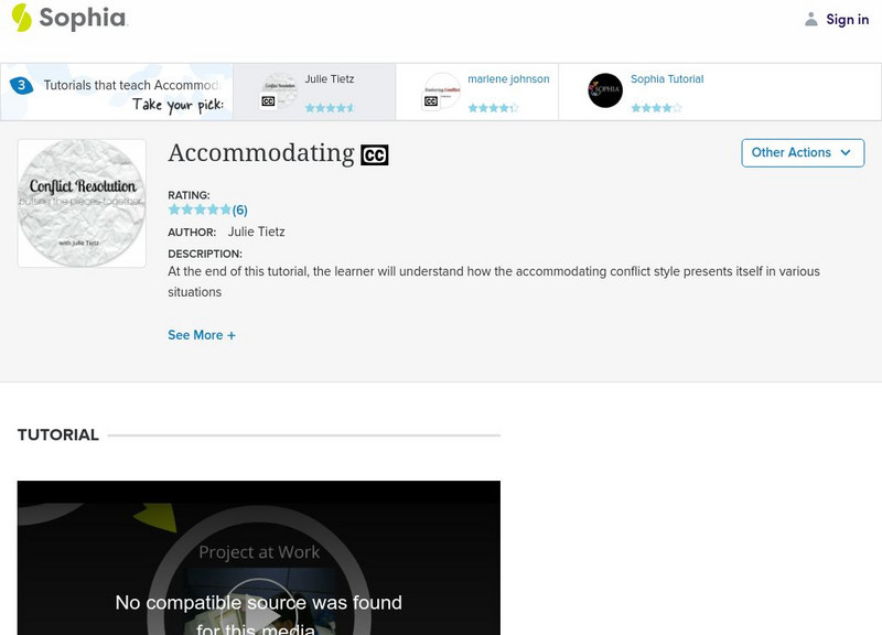 At the end of this tutorial, the learner will understand how the accommodating conflict style presents itself in various situations. It is 1 of 3 in the series titled "Accommodating."