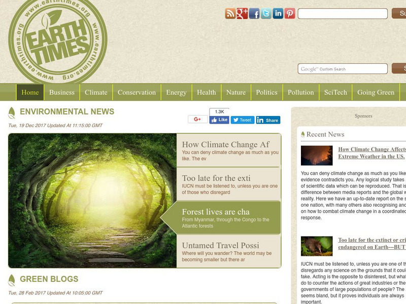 The Earth Times newspaper covers the latest in environmental issues such as world population, conflict-resolution, governance, human-rights and trade.