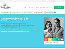 Sixth graders evaluate trustworthiness in others. In this character education activity, 6th graders brainstorm items that are trustworthy, and then list attributes of trustworthy friends. Then students read a story to evaluate the...