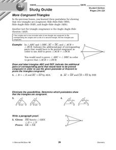 In this congruent triangles worksheet, 10th graders solve 5 various types of geometry problems related to triangles. First, they draw and label triangles, indicating the additional pairs of corresponding parts that would have to be...