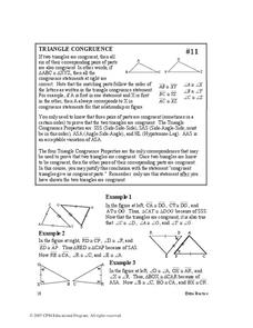 In this triangle congruence instructional activity, 10th graders solve 12 different problems that include determining triangle congruence. First, they prove that triangles are either congruent or similar. Then, students determine whether...