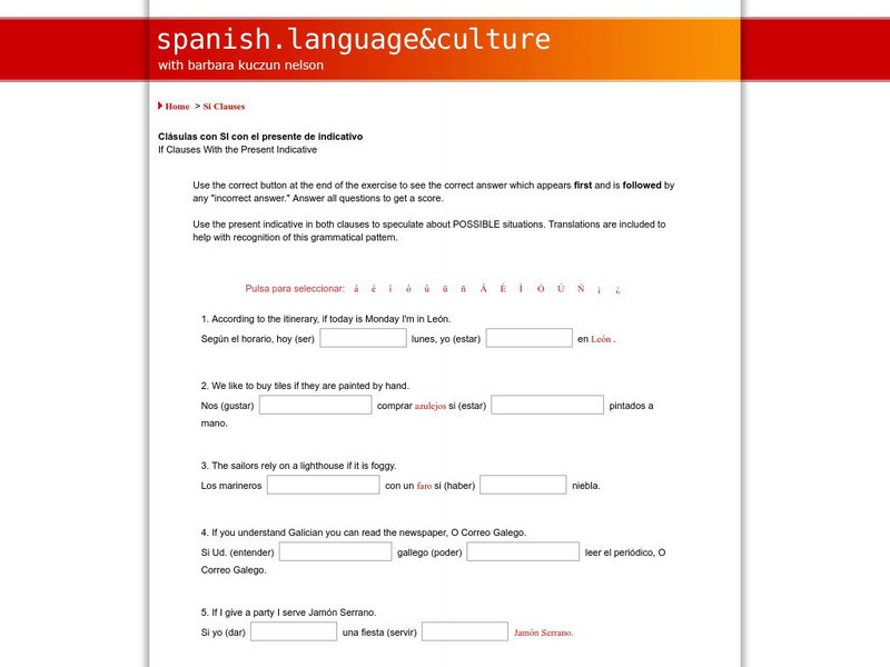 Great explanation of "if" clauses and when to use the present indicative tense. A short exercise tests the student's mastery of the principle and reviews a variety of present tense conjugations. Answers may be checked and corrected.