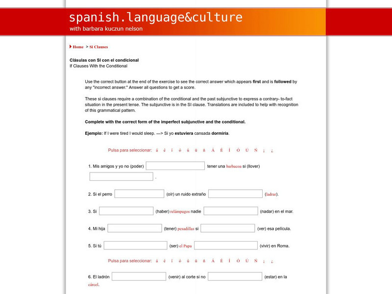 This Spanish grammar exercise provides adequate practice conjugating verbs in the conditional tense and in the past subjunctive in sentences that contain "if" clauses. Answers may be checked and corrected.