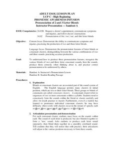 Students comprehend how to produce these pronuciation features, recognize the various blends of two and three letter consonant sounds, hear the sounds, produce them correctly when thinking about it, and practice correct pronuciation to...