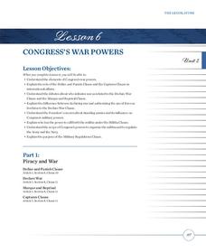 Declaring war is not as easy as some may think. High schoolers learn about Congress's limits regarding war by reading important clauses in the US Constitution. Various independent and collaborative activities reinforce learning, making...