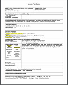 Youngsters identify and interpret the importance of having rules in order to maintain order at home, at school, in their community, and in the United States. They create a working Classroom Constitution that governs the classroom and...