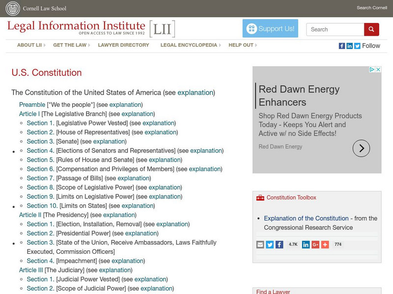 The Constitution of the United States is provided by the Legal Information Institute of Cornell University of Law.
