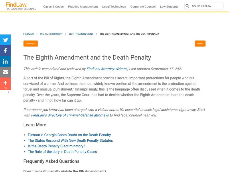 This site provides extensive information regarding several American constitutional issues such as: impeachment, war powers, interstate commerce, and the amendment process. Hyperlinks can be found throughout each constitutional issue to...