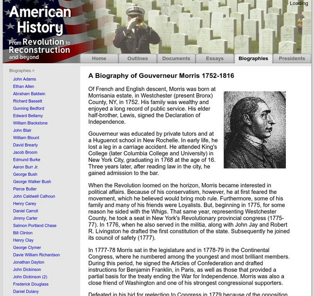 American History: Biographies: Gouverneur Morris 1752 1816