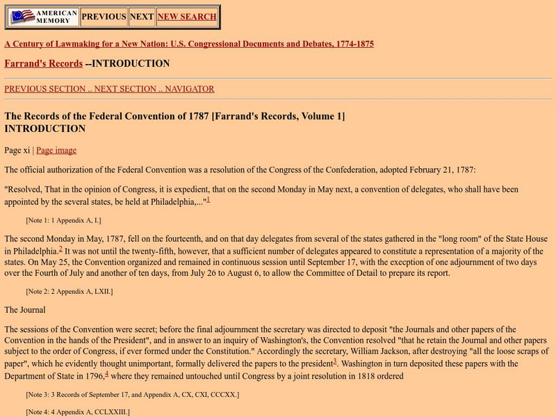 A large collection of chronological links to the text of the official records of the Constitutional Convention in Philadelphia in 1787.