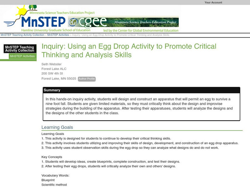 Serc: Using Egg Drop Activity to Promote Critical Thinking and Analysis Skills