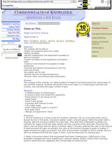 Eighth graders explore and demonstrate the seven steps of the scientific method. They predict how much sugar is in chewing gum and test, analyze, and calculate the sugar content of gum.