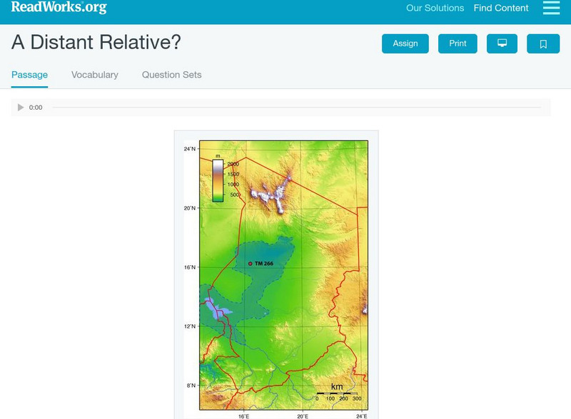 [Free Registration/Login Required] An informational text about a humanoid skull discovered in 2001. A question sheet is available to help students build skills in reading comprehension.