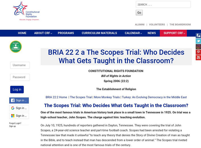 Constitutional Rights Foundation: The Scopes Trial: Who Decides What Gets Taught in the Classroom?