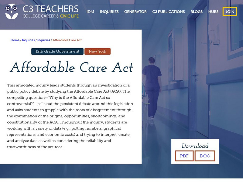 A learning module on the Affordable Care Act (ACA) that includes several supporting questions accompanied by formative tasks and source materials, followed by a summative performance task. Topics covered include identifying who was not...