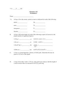 In this atoms activity, students give the atomic symbol or the name of given atoms. Students practice converting measurements, expressing answers to the proper number of significant figures. This activity has 2 fill in the blank and 2...