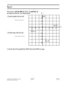 Don't be a square! Young mathematicians determine the slope and length of a line segment. They then prove whether four given coordinate points form a square.