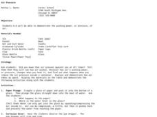 Students examine air pressure. In this air pressure lesson, students perform a series of experiments to evaluate the effects of air pressure.