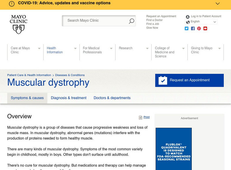 Contains information on Muscular Dystrophy, and includes pages on the signs and symptoms, causes, seeking medical advice, diagnosis, treatment, and coping skills. Each of these sections can be accessed by clicking on the link under the...