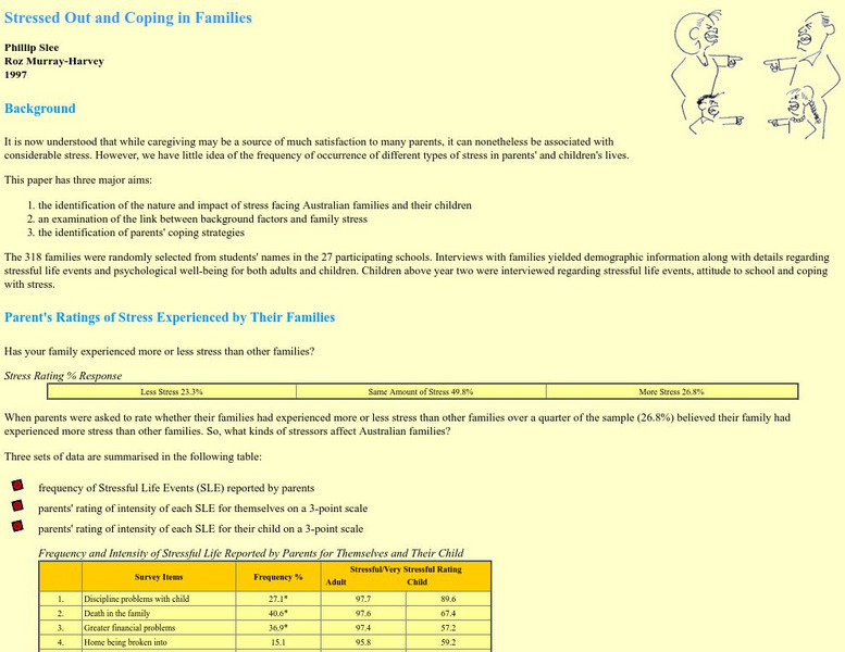 Research study investigating the identification of the nature and impact of stress facing Australian families and their children, an examination of the link between background factors and family stress, and the identification of parents'...