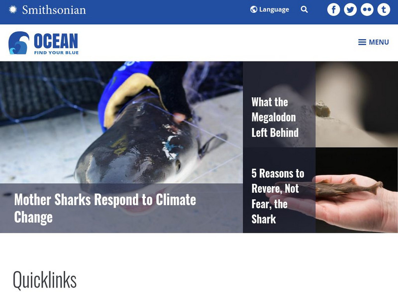 Delight in the fresh colors, sights, and sounds on this dynamic site on the ocean. Major categories consist of Ocean Life & Ecosystems, The Ocean Over Time, Ocean Science, and The Ocean and You. New information on sharks, a slideshow...