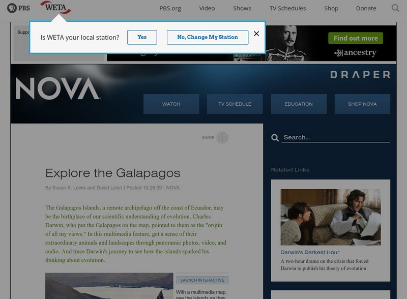 Using the interactive, multimedia map, see the Islands as they exist today and learn how they inspired Darwin, who pointed to them as the "origin of all my views." You can trace the trip of Darwin and hear from biologists at each spot....