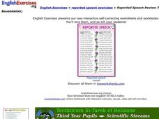 In this reported speech worksheet, students fill in the blanks to sentences with the correct verb form and fill in the blanks to other sentences with tell or say. Students complete 10 sentences.