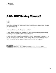 Practice counting money in this helpful worksheet. Young consumers add four separate sets of coins, and then determine how much more money they need to reach a certain amount. Pictures of coins are provided, making this worksheet a good...