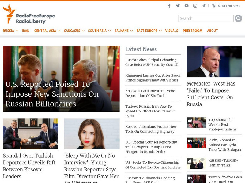 RFE/RL broadcasts news of the day to Eastern Europe countries. Also provides ongoing information about current newsworthy topics.