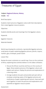 Learners match pictures of Egyptian culture with their descriptions. They assemble a poster of resources about Egypt.